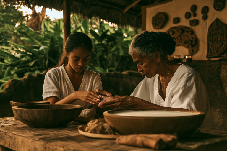 Voyant ma passion et mon dévouement, ma grand-mère a décidé de me prendre sous son aile, d’abord comme assistante, puis comme apprentie. Elle m’a enseigné non seulement les techniques du massage Haïtien, mais aussi les savoirs spirituels et énergétiques qui l’accompagnent.